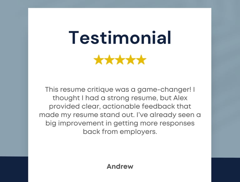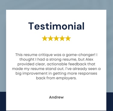 Alex at Career Ready Coaching really came through for me! The session I had with him was super helpful, and he was able to provide practical advice that fit my career goals perfectly. Alex clearly knows his stuff and made me feel confident and ready to tackle my next steps. Highly recommend if you’re looking for some solid career guidance!